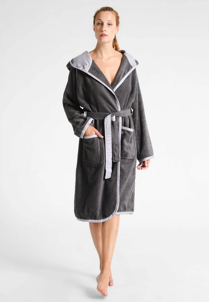 - Details: Hood, pockets, belt